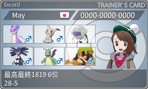 仲間大会に潜ったところゴリランダーやパッチラゴンが思ったより少なくラプラスの初手ダイマ展開が通しやすそうだったので軸にすることに決めた。ラプラス軸の構築で有名なラプミミノラゴンを使ってみたところ使用感がよかったためそのまま使い続けた。